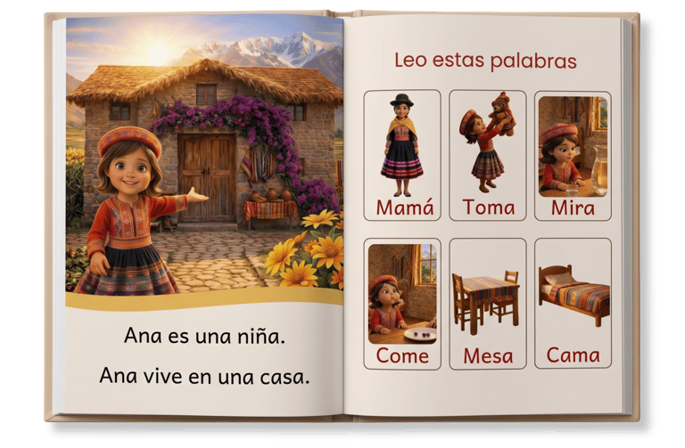 Built on the Science of Reading, story-based learning, and comprehensible input, this approach helps children decode, understand, and enjoy Spanish from the very first pages.